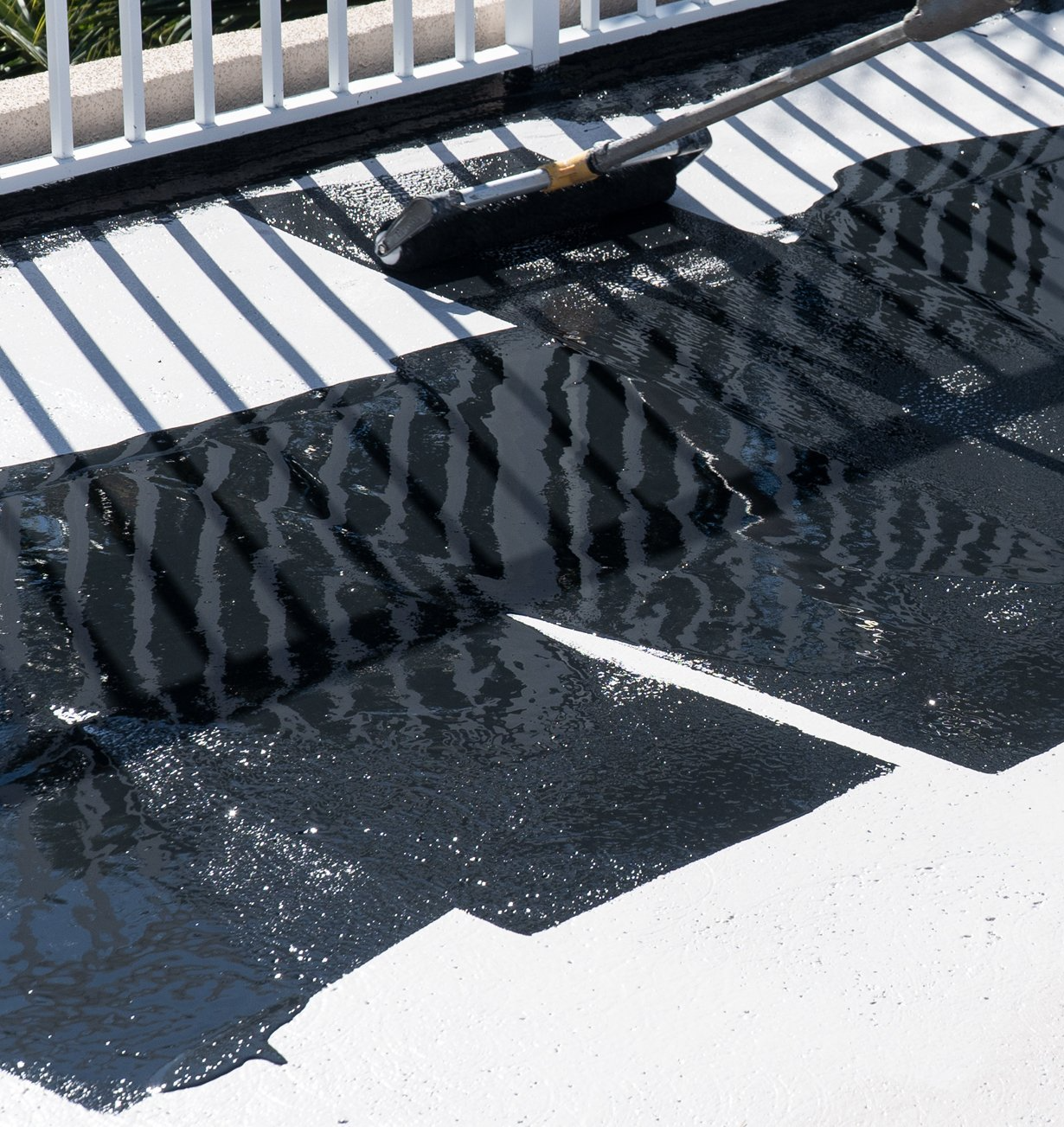 Customers have three options to choose from when they are waterproofing their patio decks, rooftop decks and balconies. You can choose to have a premium concrete coated floor installed above the waterproofing membrane; select to have tile installed by a tile contractor or opt to use the waterproofing topcoat, which is available in 4 color selections. The three floor options each involve a different completion process. Both the waterproof topcoat and concrete-coated installation involve adding non-slip silica sand compounds, while the tile option features a kiln dried silica sand broad casted into the final coat. The process that allows for the tile to be correctly installed above the membrane and for the tile to properly stick to the waterproof membrane surface.